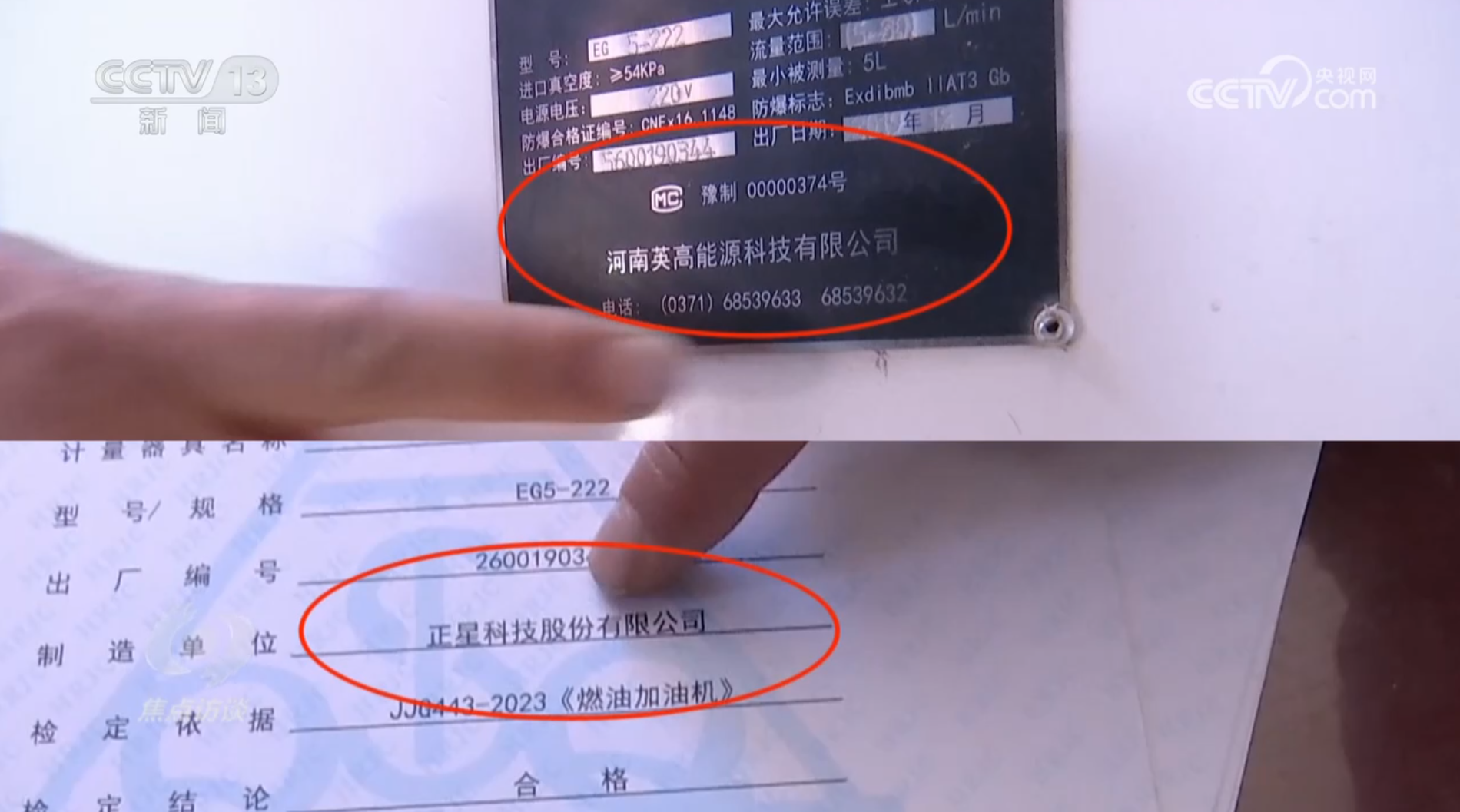 正在使用的加油机上标注的厂家,跟加油站站长现场提供的检定合格证书上的厂家竟然不是同一家。现场专家取出便携式加油机作弊测试仪连上一台加油机,发现加油机的主板有被改造的痕迹。