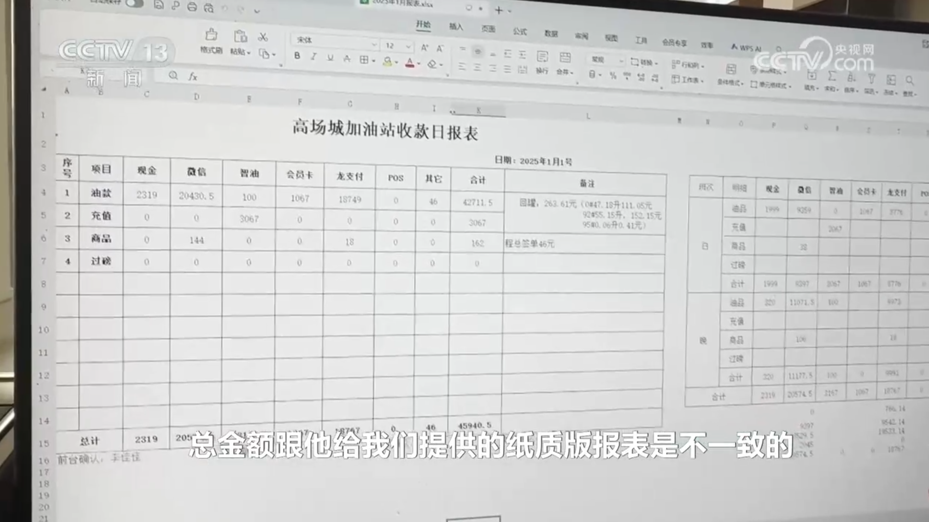这家加油站交给执法检查人员的纸质账目报表显示,每天营业额只有一两万元,每个月几十万元。而检查人员发现的U盘里是加油站自己记的另一份账,两份账目数字差异很大。在U盘账目记录里,记者看到最近三个月加油站的月销售额数字。