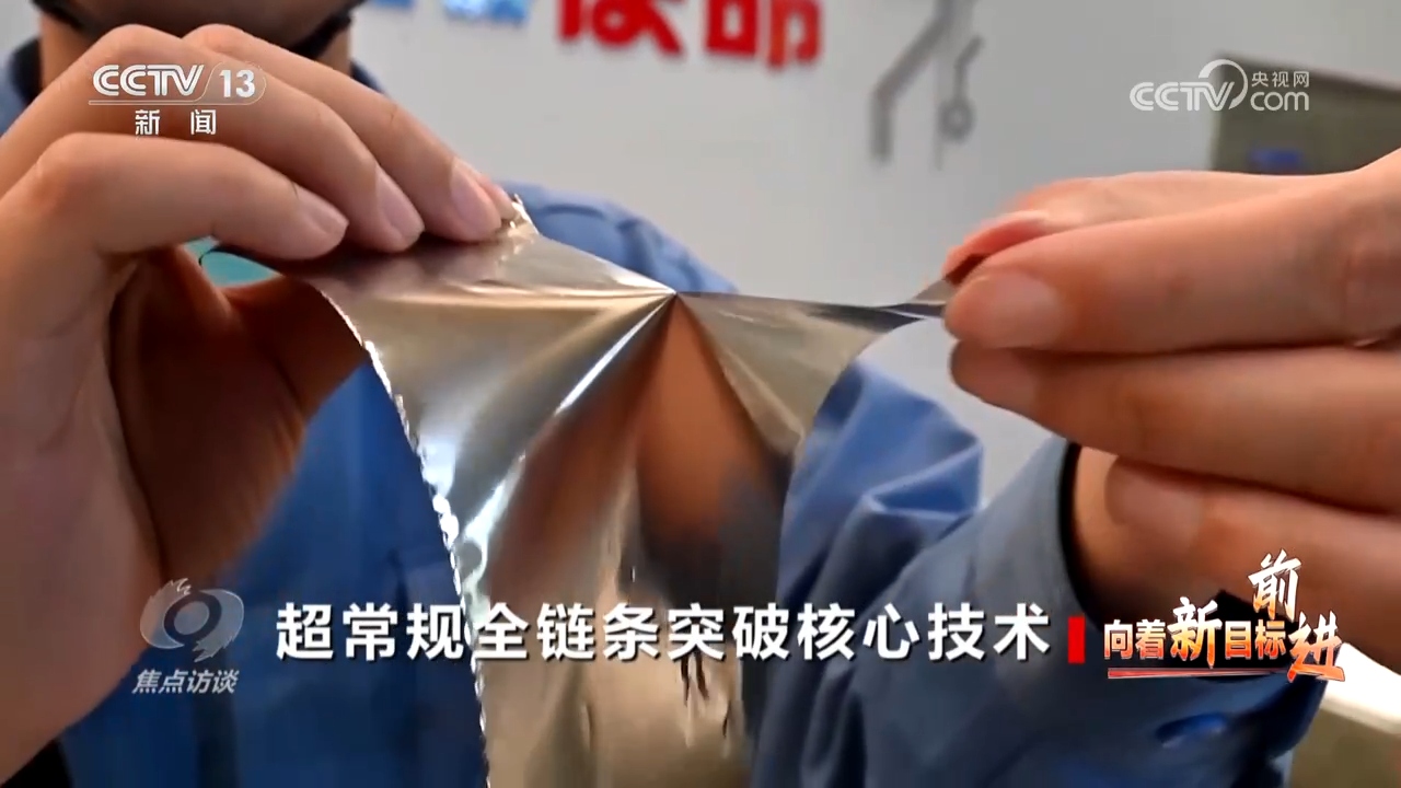 像铝箔纸一样的钢材俗称“手撕钢”,厚度只有0.015毫米,连一张A4纸五分之一的厚度都不到,是世界上最薄的钢,主要应用于精密仪器、航空航天等领域。这项技术因为生产工艺难度大,曾经长期被外国垄断。这些年,经过科研团队的攻关,我们的手撕钢生产不仅实现了从0到1的突破,还实现从“跟跑”“并跑”到“领跑”。