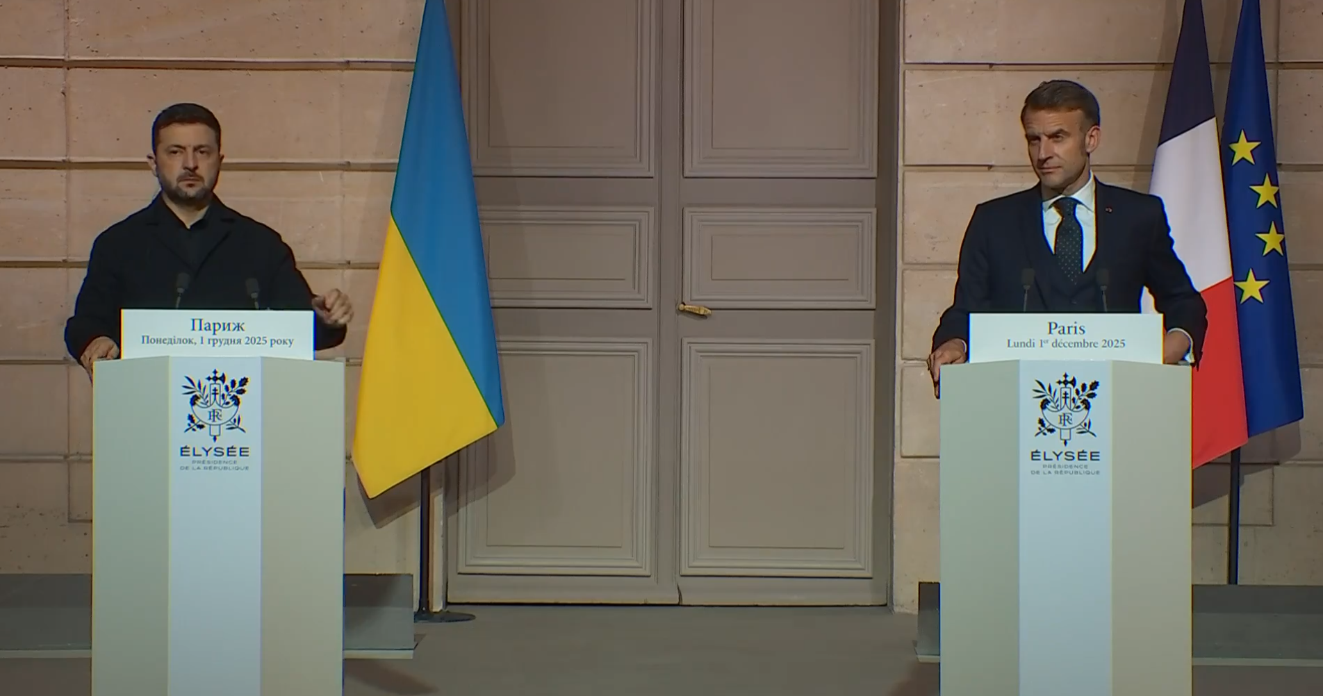 当地时间12月1日,法国总统马克龙与乌克兰总统泽连斯基在爱丽舍宫召开联合新闻发布会。