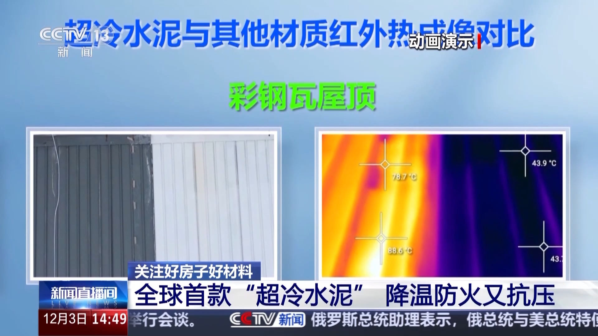 除了无人水泥生产线,在2025中国建材行业7大科技成果中,还有一款与好房子建设密切相关的创新产品——全球首款无需用电就能自行降温的“超冷水泥”,它在防火、抗压上也有很强的能力。总台记者和测试人员通过一组实测,一起验证了它的过人之处。