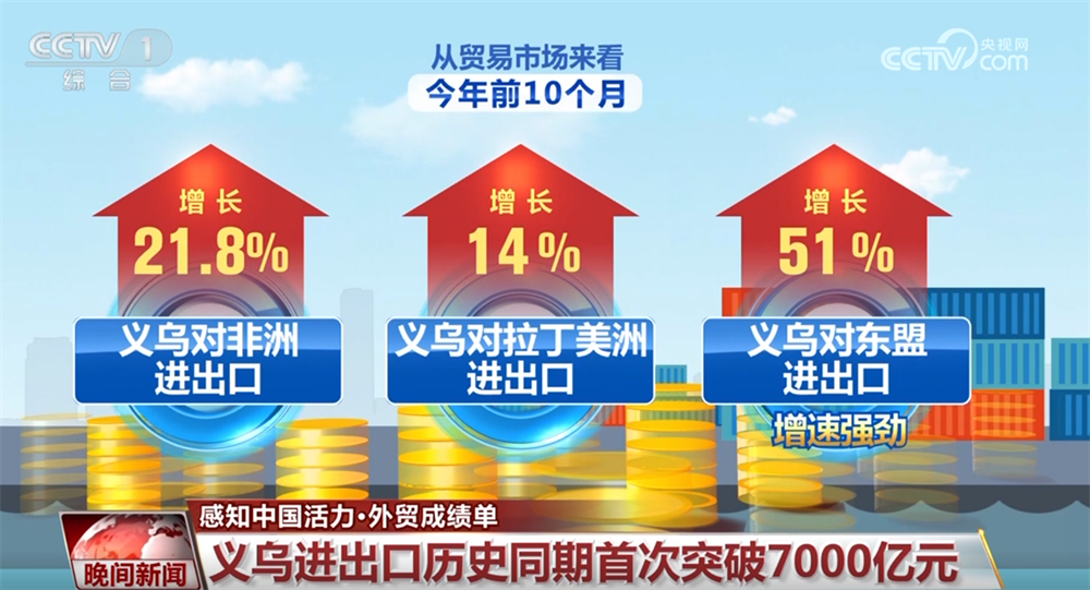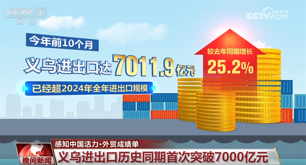 央视网消息:今年以来,面对复杂的国际贸易环境,浙江义乌外贸呈现出强劲韧性。今年前10个月,义乌市进出口规模历史同期首次突破7000亿大关。这份亮眼的成绩单是如何得来的?来看一线观察。