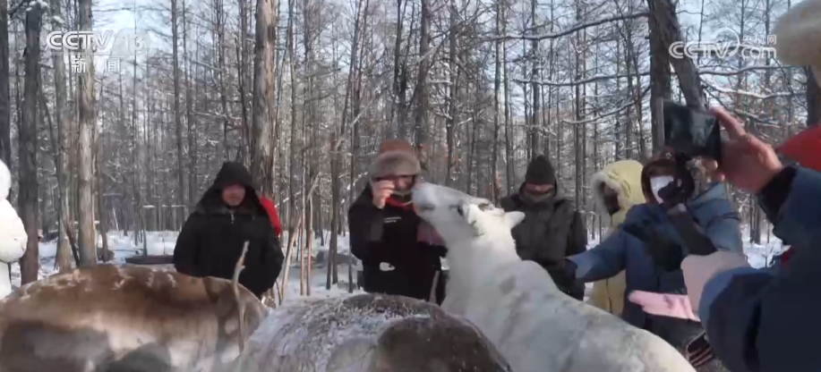 这个冬季,内蒙古集中推出了159项特色冰雪文旅活动。在根河市一景区,软萌的驯鹿惹人喜爱,游客们争相合影留念。