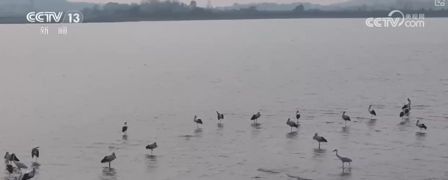 在鄱阳湖湖口鞋山水域湿地,东方白鹳、白琵鹭等珍稀越冬候鸟已陆续抵达。它们或悠闲踱步,或低头觅食,或翩跹起舞,为初冬的鄱阳湖增添了灵动生机。