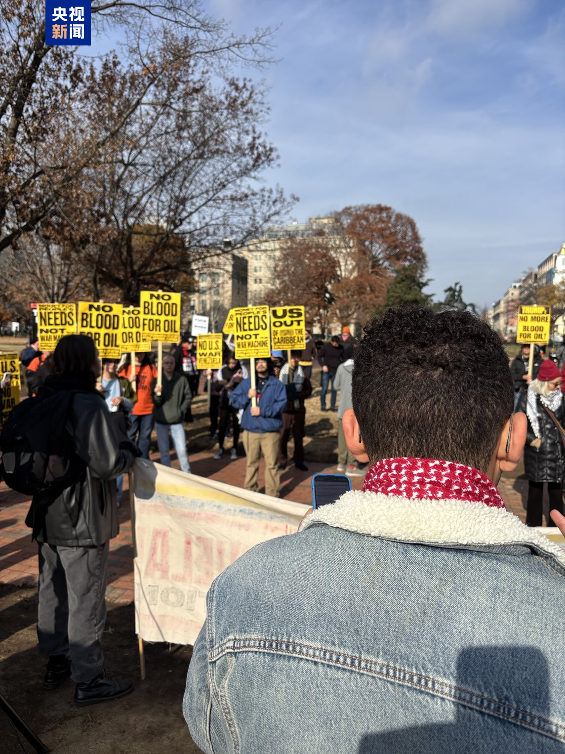 当地时间12月6日,示威者聚集在美国白宫前,抗议特朗普政府针对委内瑞拉的军事行动。央视记者获悉,全美已有超过60个城市举行相关示威活动。