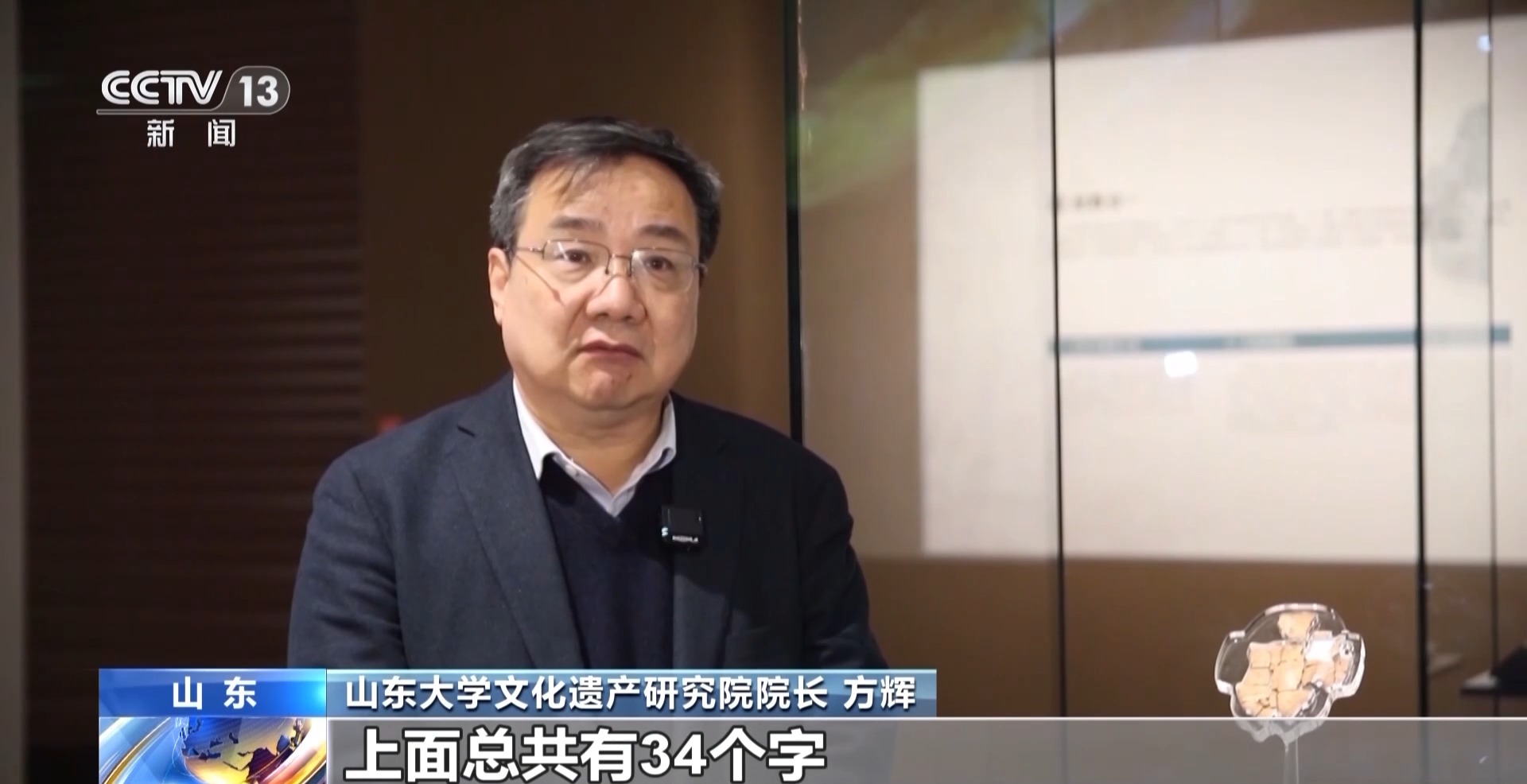 山东大学文化遗产研究院院长 方辉:这一件是当时最大的一件,就是3/4的一个龟的副甲,上面总共有34个字,它刻写的内容都是当地商代贵族祭祀的内容,其中提到对4位母辈的先人进行祭祀,用了四头不同的猪。像这样的内容过去在都城以外、在安阳殷墟以外很少发现,它说明在商代某一个时期,都城之外的这些贵族也掌握了使用刻写文字的技能,这一点是非常重要的。