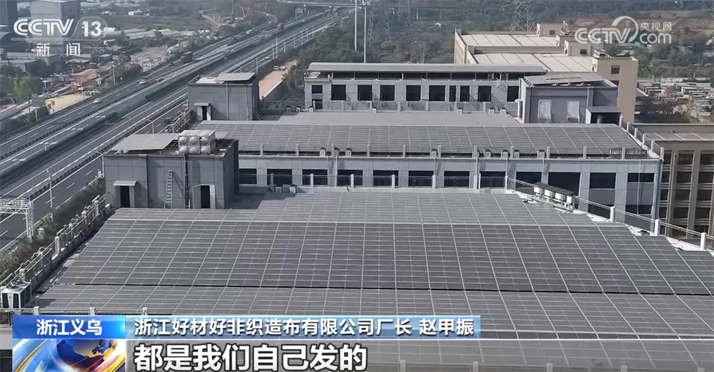 浙江好材好非织造布有限公司厂长 赵甲振:我们今年在厂房的楼顶上装了光伏发电,现在基本的生活用电都是我们自己发的,用不完的电又可以并入国家电网,给公司也创造了一定的收入。