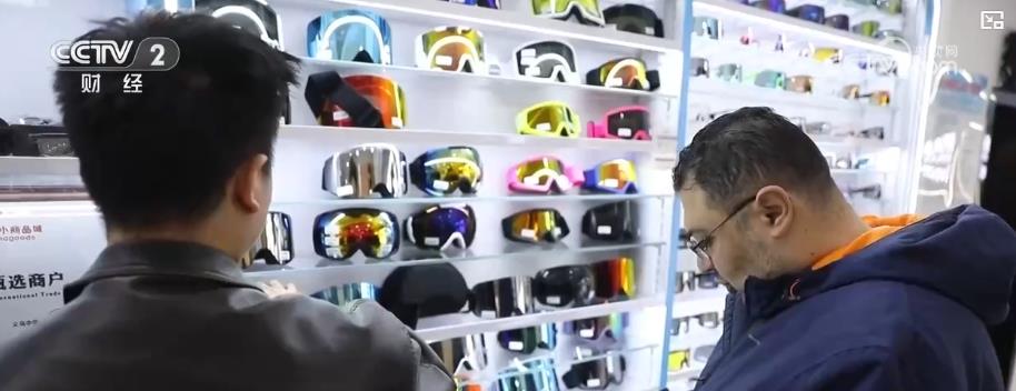 在浙江义乌国际商贸城三区,一位外国采购商正被陈列着上百款滑雪镜的展柜吸引。在与店主交流后,他果断采购了一批样品。