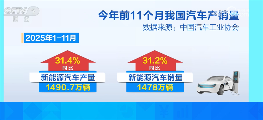 最新数据显示,2025年1—11月,我国汽车产销分别完成3123.1万辆和3112.7万辆,同比分别增长11.9%和11.4%。其中,新能源汽车产销分别完成1490.7万辆和1478万辆,同比分别增长31.4%和31.2%。
