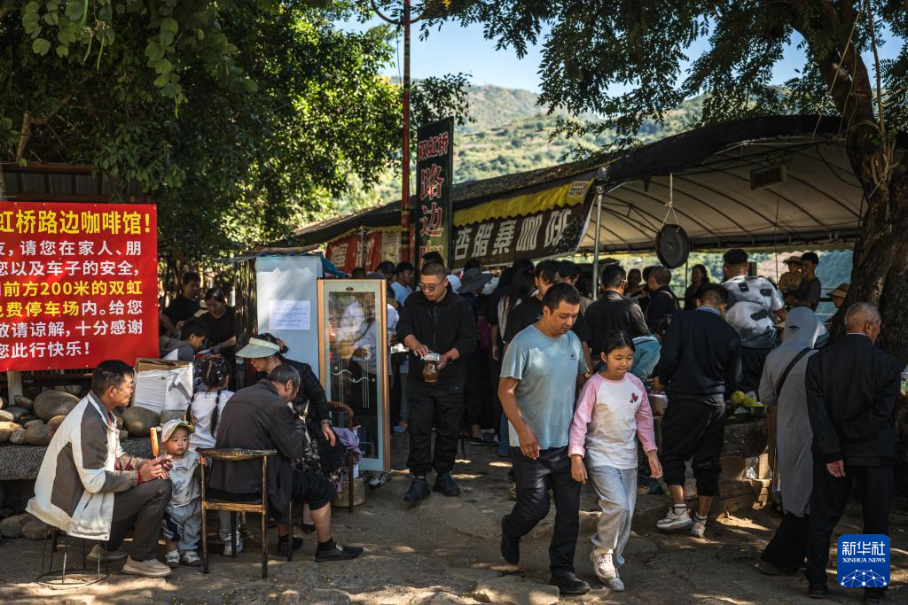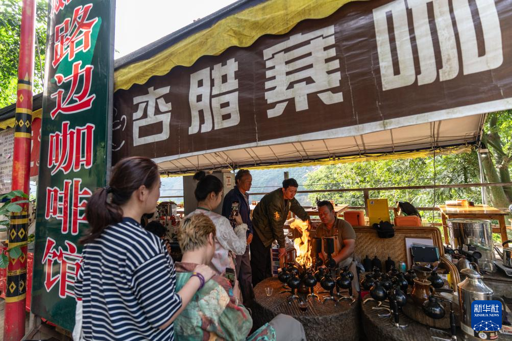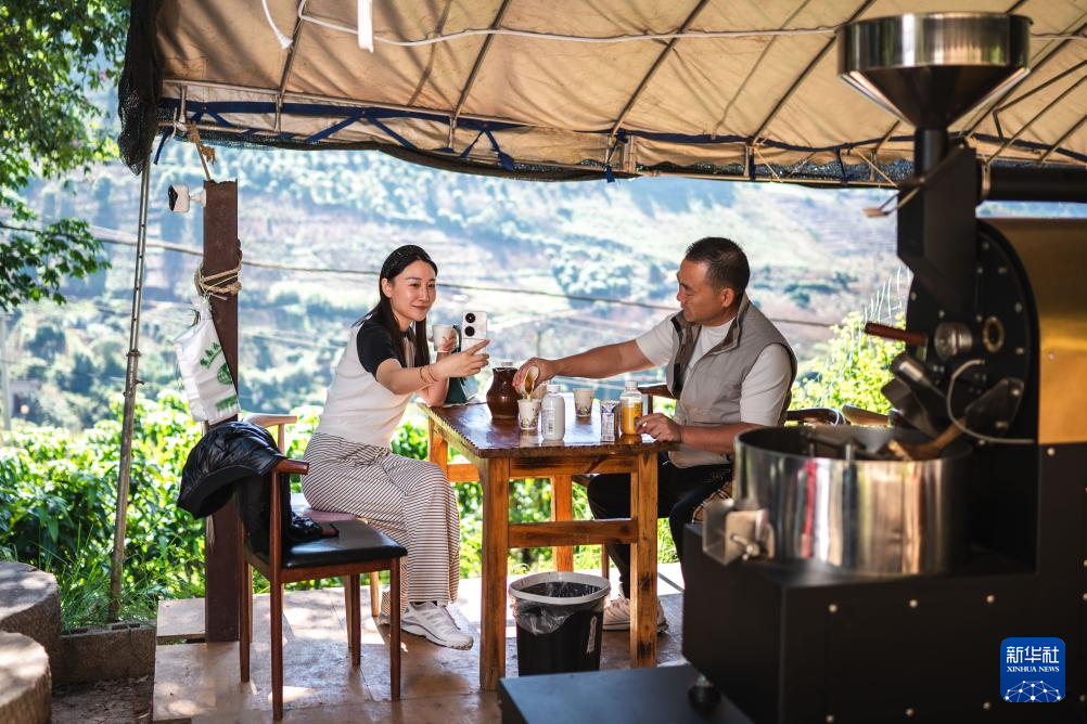 11月15日,顾客在位于云南省保山市隆阳区芒宽乡的“路边咖啡馆”拍照留念。新华社记者 王冠森 摄