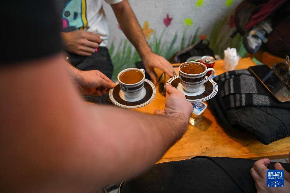 11月22日,在土耳其伊斯坦布尔的曼达巴特马兹咖啡店,一名工作人员将做好的咖啡送至顾客处。新华社记者 刘磊 摄
