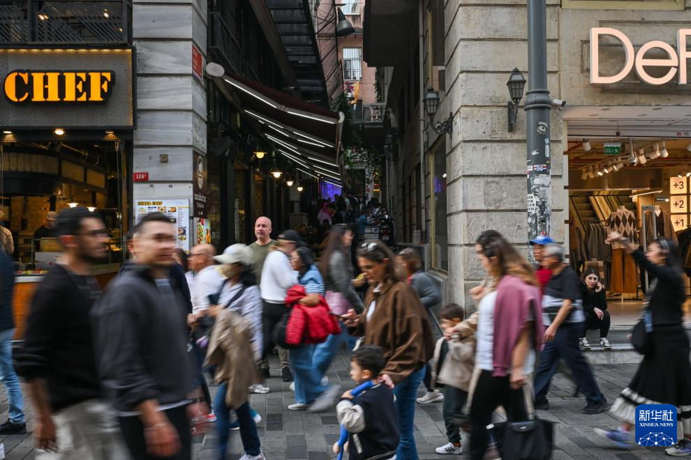 这是11月22日在土耳其伊斯坦布尔独立大街拍摄的曼达巴特马兹咖啡店所在巷道的入口。新华社记者 刘磊 摄