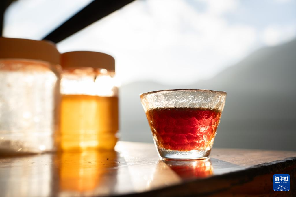 这是11月16日在云南省保山市隆阳区芒宽乡“路边咖啡馆”拍摄的李金合制作的蜂蜜和咖啡。新华社记者 高咏薇 摄