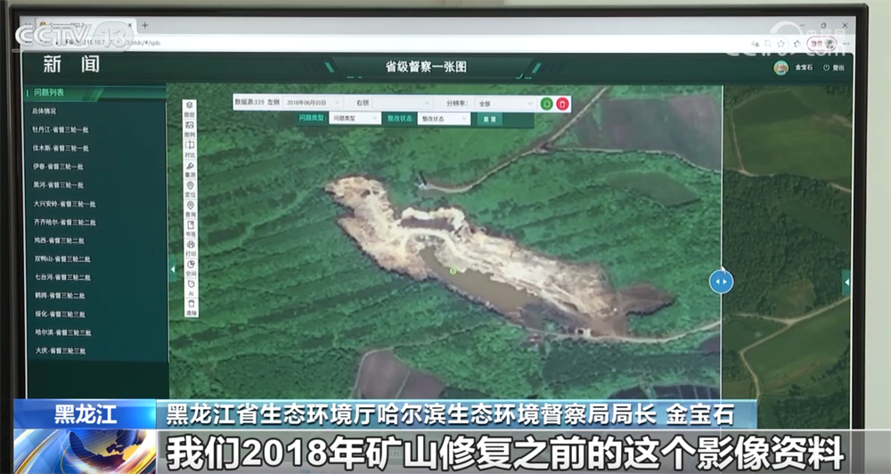 黑龙江省生态环境厅哈尔滨生态环境督察局局长金宝石称:“这个图片就是我们2018年矿山修复之前的影像资料,绿化率是比较低的,这一个图片是我们2025年卫星遥感的图像,可以看到两个图片非常鲜明的变化,绿化率提高了。过去我们需要人员到现场进行实地核查,一般每天一个工作人员只能核查3—5个点位,现在我们通过这项技术,每天每人平均能核查50个点位。”