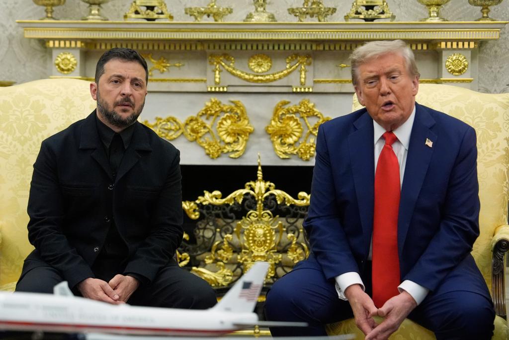 8月18日,美国总统特朗普(右)在华盛顿白宫与乌克兰总统泽连斯基举行会晤。新华社/美联
