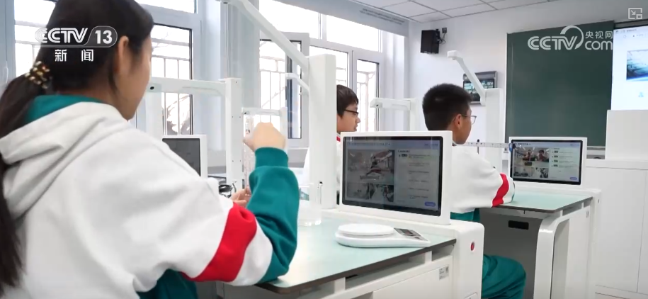 在重庆,南渝中学运用AI大模型赋能化学、物理、生物等科学课堂,提升学生的科学兴趣。