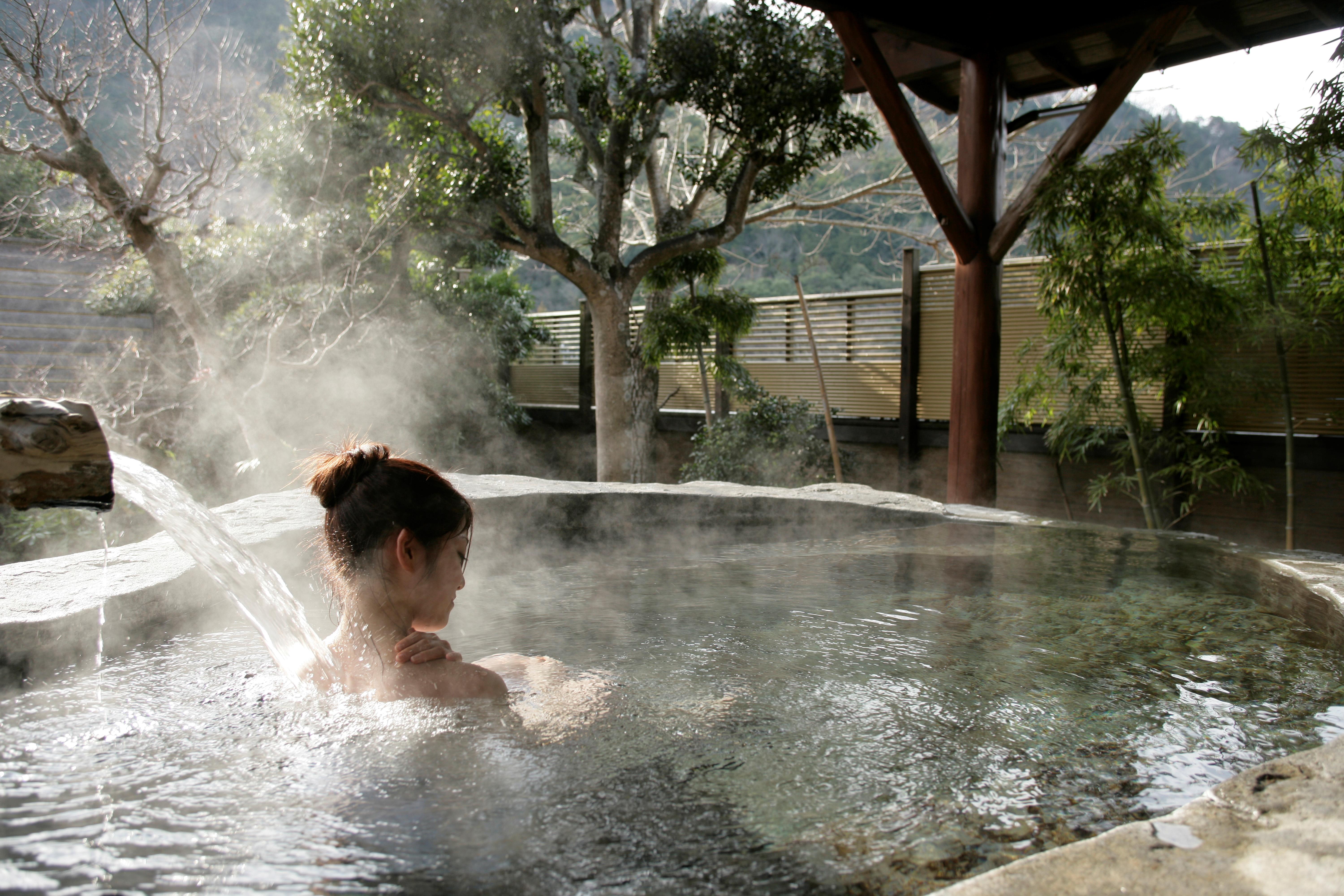 泡温泉前先沐浴,可以洗去皮肤汗渍,从而使皮肤更容易吸收温泉水中的矿物质,还可以对身体进行“预热”。