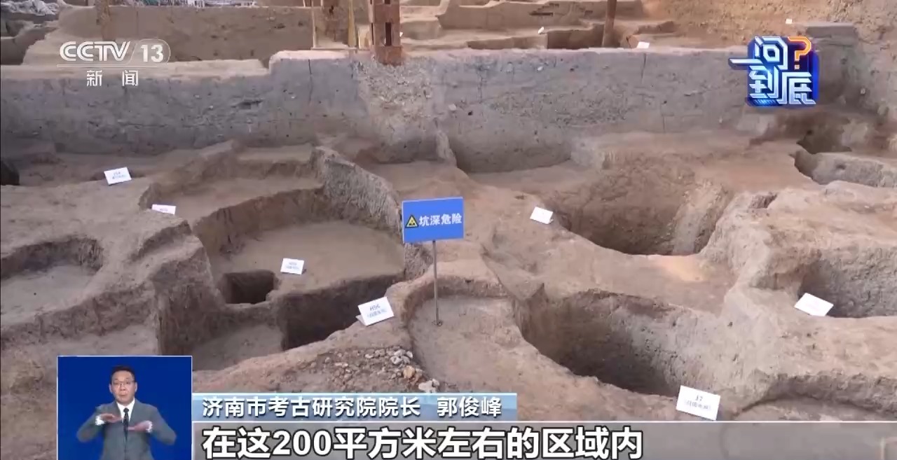 济南市考古研究院院长 郭俊峰:在这200平方米左右的区域内,密集地分布着13口水井,水井的时代从龙山文化时期到战国,到唐代,到宋代延续了3000多年。除了水井之外,还有一些灰坑,甚至还发现了一个战国的窑址,这说明龙山文化时期以来人类在这密集活动。