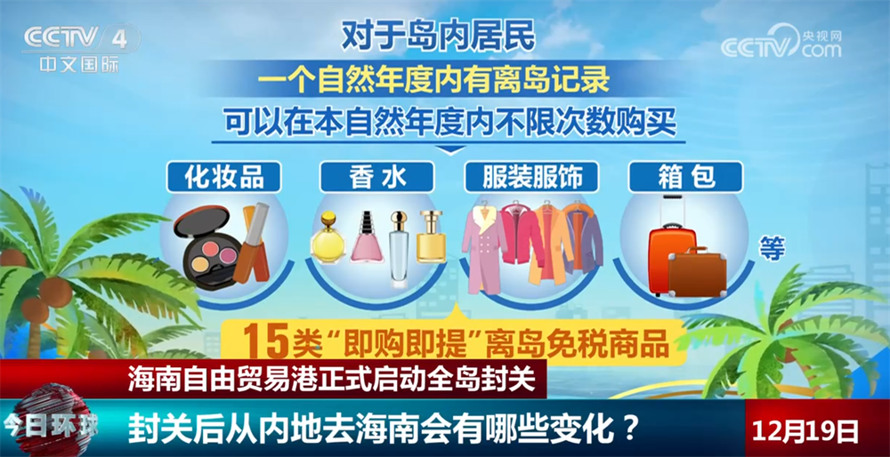 很多人关心,封关后从内地去海南会有哪些变化?首先,从内地去海南岛出差旅行不需要办理额外证件。去买免税品,选择会更多。目前离岛旅客每年每人免税购物额度为10万元,不限次。而对于岛内居民,只要一个自然年度内有离岛记录,就可以在本自然年度内不限次数购买化妆品、香水、服装服饰、箱包等15类“即购即提”离岛免税商品。
