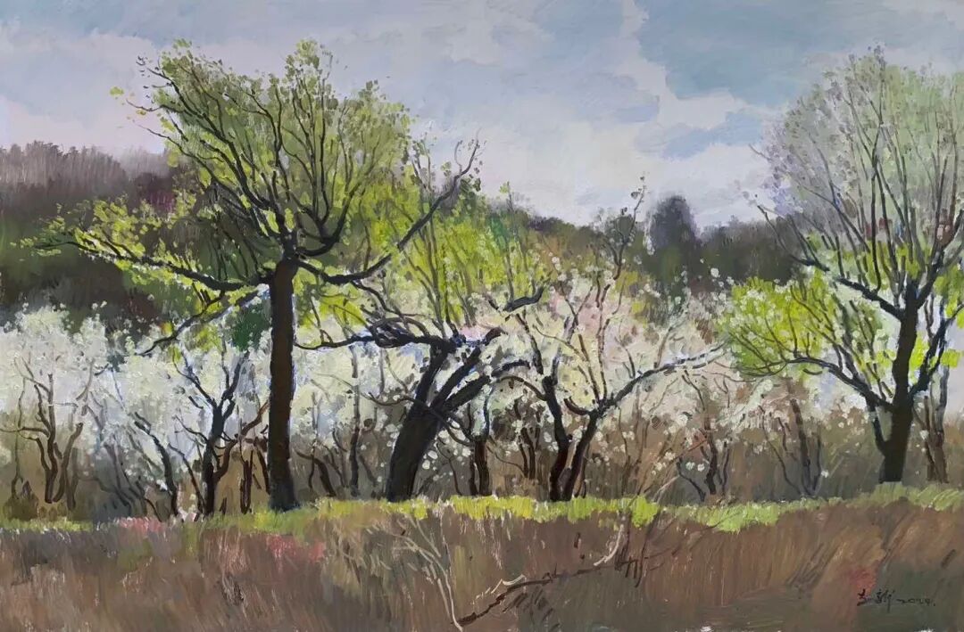 军旅的主题性创作和行旅的风景画在孙立新的创作上形成了互为补益、相得益彰的内在关联。他笔下的风景富有“大画”的景观和充实的内涵,而他在风景油画中所形成的诗意格调,又使他的主题性创作散发出人文关切的光彩。