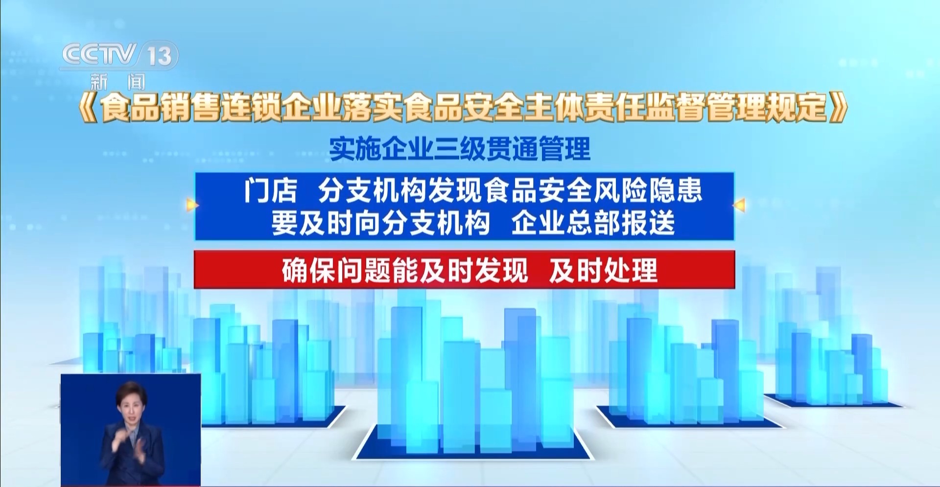 同时,《规定》要求实施企业三级贯通管理。企业总部、分支机构、门店均要建立并实施“日管控、周排查、月调度”工作制度和机制,强调风险信息上下贯通,管控措施要逐级监督,门店、分支机构发现食品安全风险隐患要及时向分支机构、企业总部报送,确保问题能及时发现、及时处理。