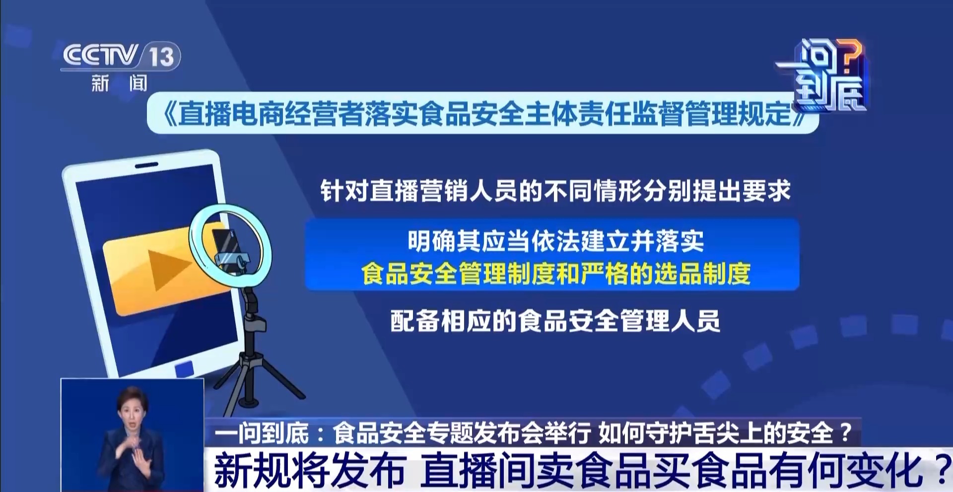 《规定》将明确直播电商各相关主体的食品安全责任,规范经营行为、强化监管措施、细化处罚标准,更好防范食品直播活动中的食品安全风险。