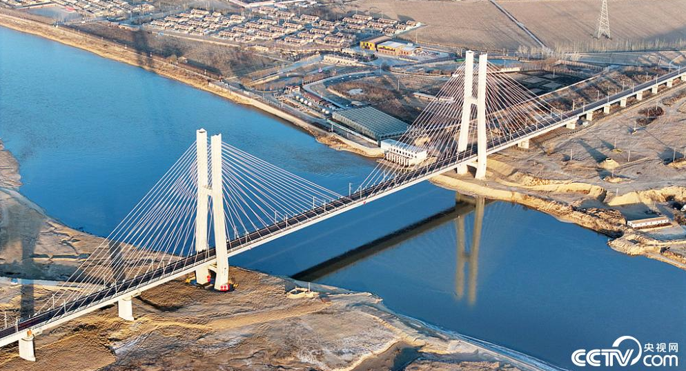 宁夏石嘴山与内蒙古乌海交界处的包银高铁乌海黄河特大桥,与晨曦中蜿蜒流淌、波光粼粼的黄河互相映衬,构成了一幅美丽的冬日画卷。