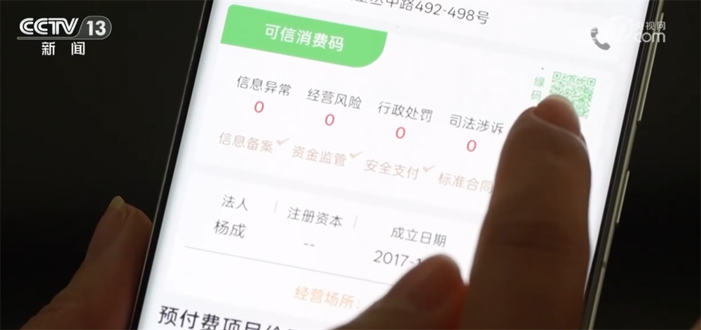 在成都市郫都区一家健身中心,市民刘先生正在通过扫码支付方式办理健身年卡,记者注意到这个支付码上方显著标明了预付式消费信用监管平台可信消费码。