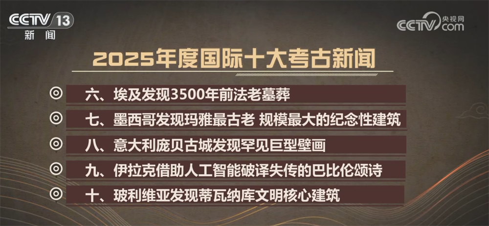 央视网消息:中央广播电视总台12月24日发布2025年度国内国际十大考古新闻。