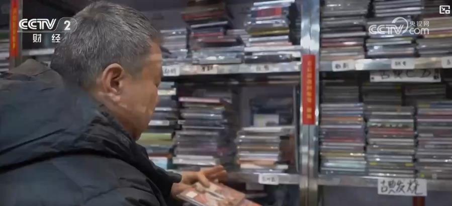 在成都市七家巷,64岁的高瑞廷开了一家音像收藏品店,店内货架上陈列着黑胶唱片、CD、磁带等大量早年发行的音像制品,价格在几十到上千元不等。