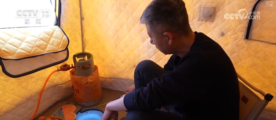 12月28日,在冰封的中俄界河上,五颜六色的冰钓暖帐整齐排开。来自中俄两国的冰钓爱好者,在冰天雪地里一边比赛,一边享受垂钓的乐趣。