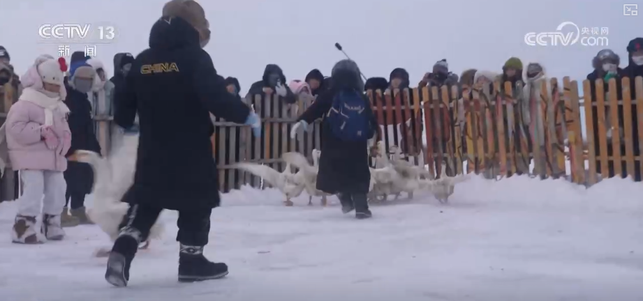冰钓需要耐心和安静的环境。而冰雪娱乐区里却是另一番景象,拖拉机拉雪圈、冰壶投掷,以及趣味十足的“抓大鹅”等项目,让游客在冰雪中尽情释放活力。