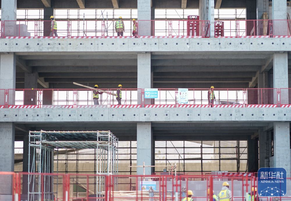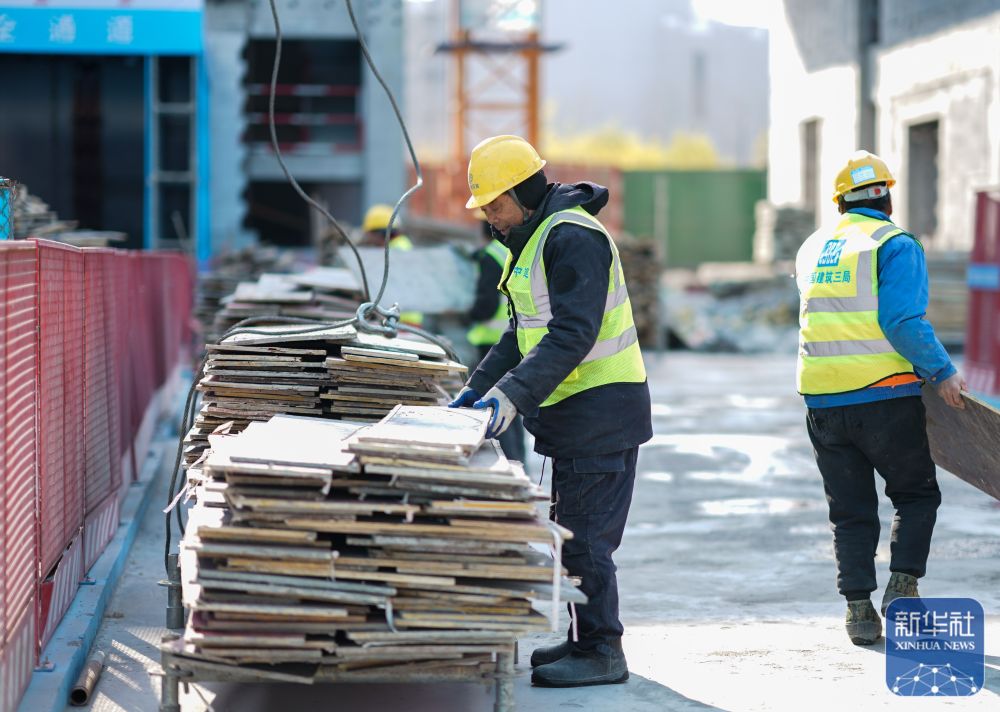 ↑ 1月2日,工人在位于上海的中建三局一公司灿瑞科技全球芯片研发中心项目工地施工。新华社记者 丁汀 摄
