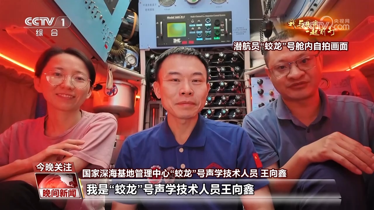 国家深海基地管理中心“蛟龙”号声学技术人员 王向鑫:大家好,我是“蛟龙”号声学技术人员王向鑫,是今天下潜任务的副驾驶,我的主要任务是负责声学系统保障和辅助拍摄。