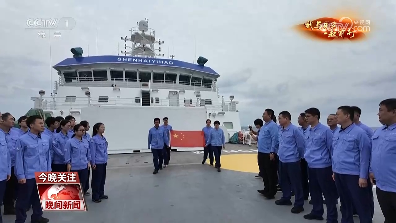 2026年元旦,唐嘉陵和队友们依然在坚守岗位,他们在“深海一号”船上举行了一场升旗仪式。