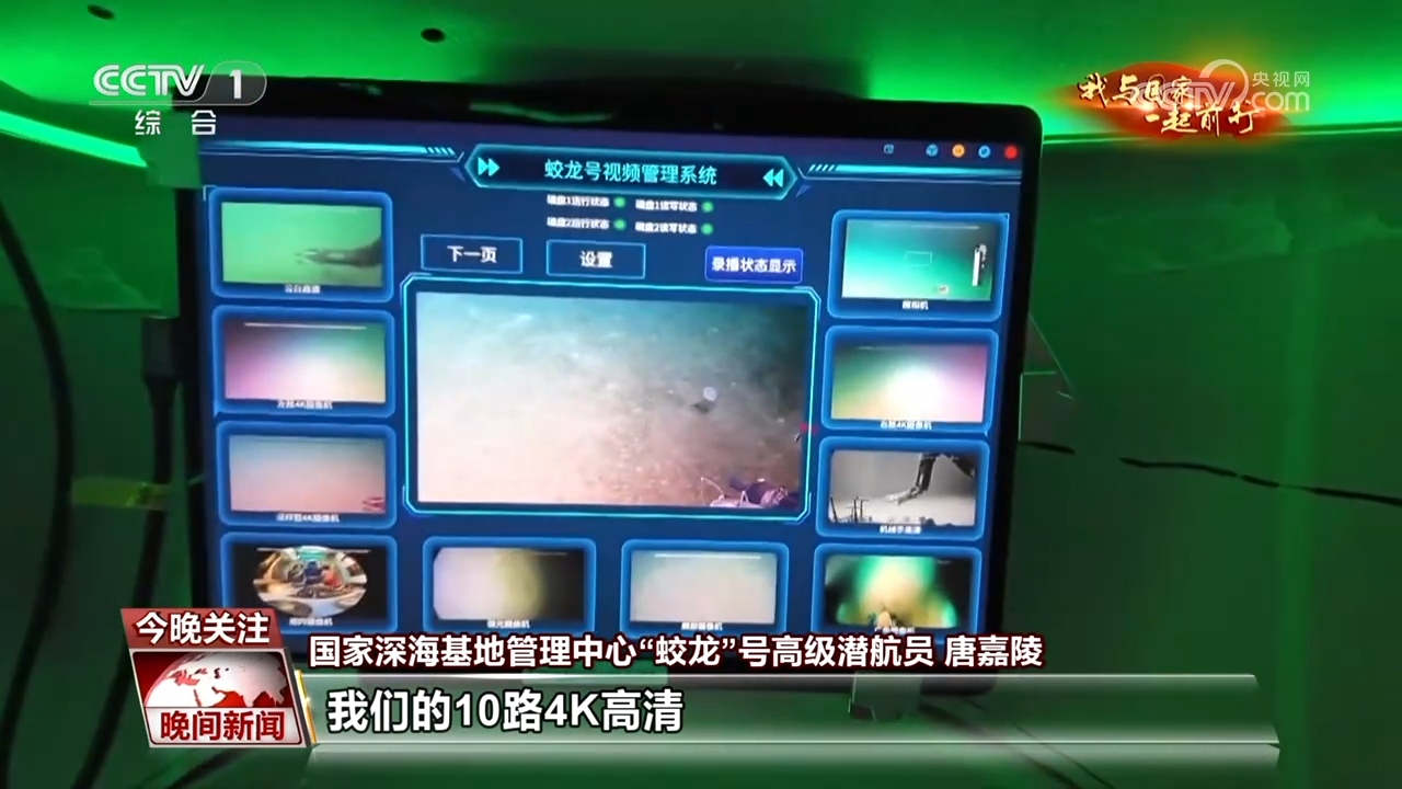 国家深海基地管理中心“蛟龙”号高级潜航员 唐嘉陵:大家看到我们现在升级之后的这个视频系统,我们的10路4K高清,还有大角度的观察,我们这个水下的视野更好了。