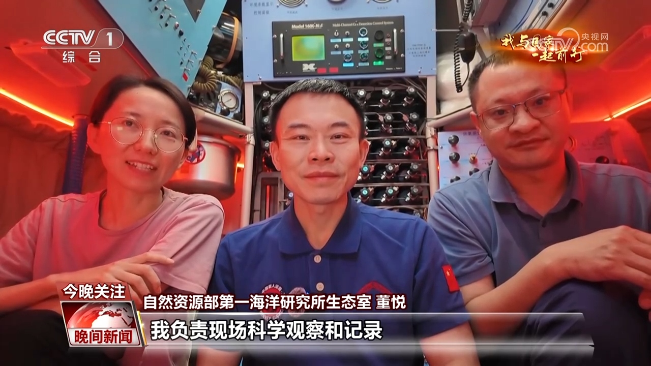 国家深海基地管理中心“蛟龙”号高级潜航员 唐嘉陵:这是我们今天一起下潜的三人小组,来和大家打个招呼。