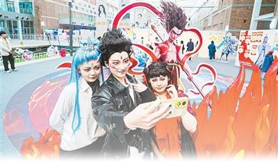 观众在北京国际电影节电影《哪吒之魔童闹海》破亿手绘海报展拍照。北京国际电影节供图