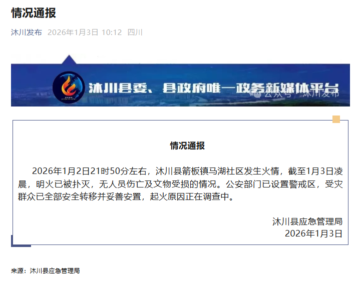 ·四川乐山通报沐川箭板古镇火情:无人员伤亡及文物受损情况。