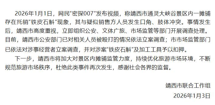 ·网民称在景区内与疑似“铁皮石斛”销售方发生肢体冲突,广西靖西市通报:已立案调查。