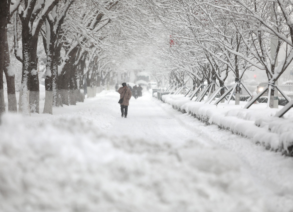 1月11日,山东威海迎来强降雪,不少市民选择步行或者乘坐公共交通出行。