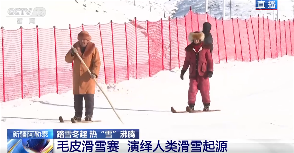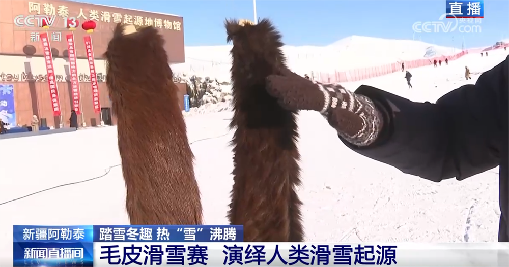 在新疆阿勒泰的将军山滑雪场,1月16日是当地人类滑雪起源地纪念日活动,所以现场特别热闹。在雪道上,一场特别的滑雪比赛正在进行,几十名选手穿着传统的翻毛皮衣,脚踏滑雪板,在雪道上快速滑行。这就是阿勒泰每年都会进行的毛皮滑雪比赛。大家细看会发现,这些选手踩的滑雪板有点不一样,它是本地特有的一种毛皮滑雪板,它是用一块完整的木头做雪板,长度和我们常见的滑雪板差不多,特别的地方是它的背面是用马的前腿毛皮裹在上面,在上坡时逆毛,增大摩擦力,也就不会打滑;而在下坡时顺毛,可以快速滑下去。穿它滑雪,总结下来就是“逆毛踏雪顺毛飞”。