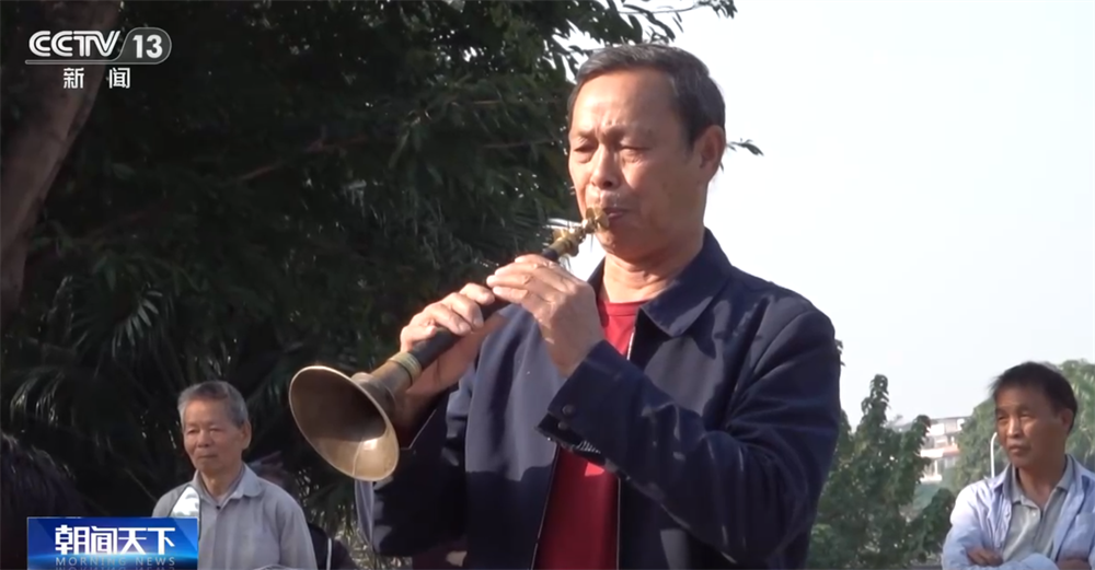 一早,在广西玉林市的清湾江公园里,八音演奏已经开始,吸引了不少市民驻足欣赏,还有人不禁跟着演奏打起了节拍。