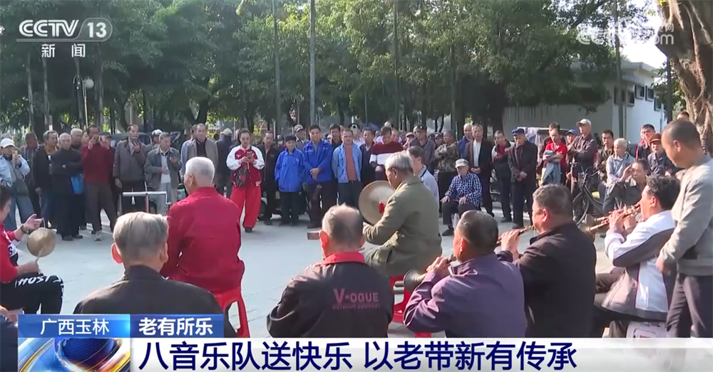 听过了高亢激昂的蒲剧,我们再把目光转向广西玉林。玉林八音是民间器乐的一个乐种,也是国家级非物质文化遗产,其演奏共采用鼓、锣、钹、笛、箫、弦、琴及人声八大类乐器。为了传承玉林八音,当地一些老年人自发组成了一支八音乐队,在公园里为大家表演,这也成为他们晚年生活里的一件乐事。