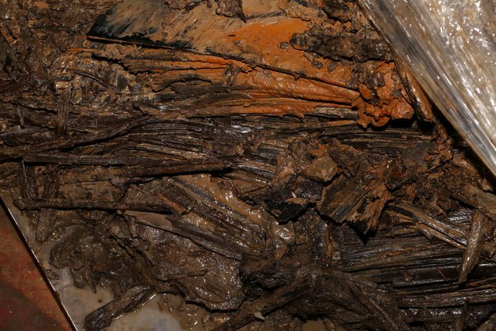 这是孔子衣镜出土时的情况(资料照片)。新华社发