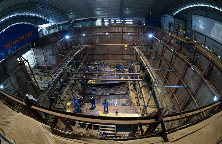 这是位于江西南昌的海昏侯墓遗址发掘现场(2015年11月14日摄)。新华社记者 万象 摄