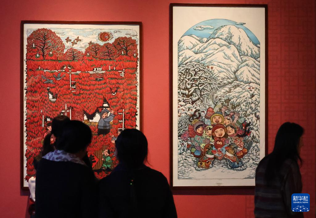 1月16日,观众在辽宁省博物馆观看展出的年画作品。新华社记者 韩赫 摄