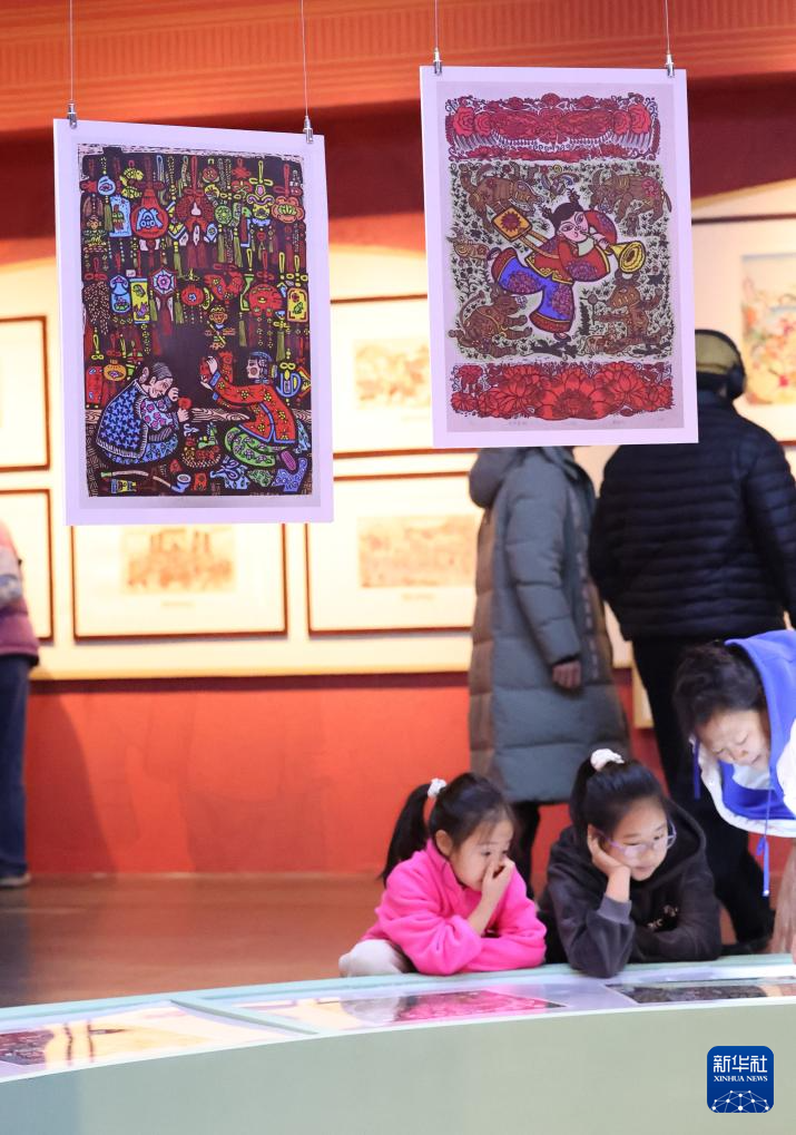 1月16日,一名小女孩在辽宁省博物馆观看展出的年画作品。新华社记者 韩赫 摄