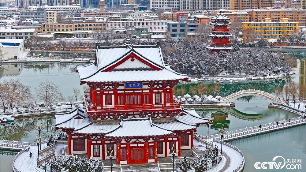 大雪过后的山西省运城市区银装素裹,钟楼、池神庙、盐池和中条山共同勾勒出壮美的冬日长卷。