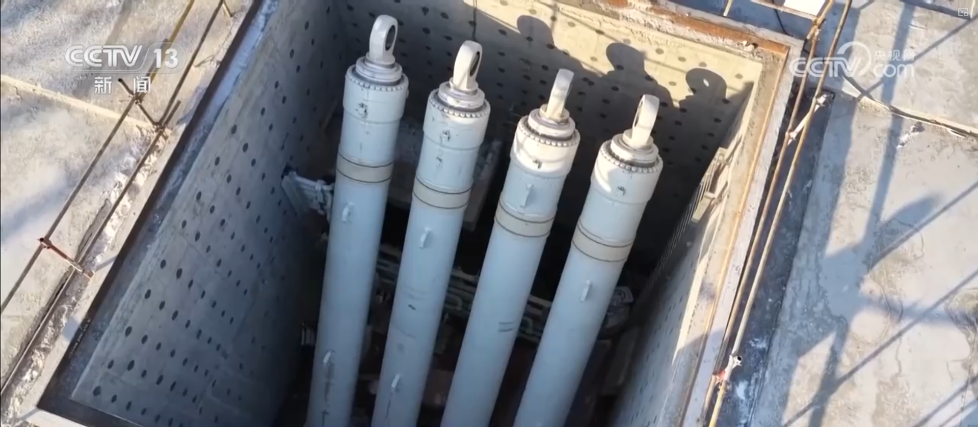近距离探秘这个平台的特殊构造,首先是在记者左手边这个七八米深的液压基坑,里面的4个“大家伙”名叫液压起竖油缸,它们能把几百吨的液体火箭来个由水平到垂直的90度“大翻身”,为火箭调整好发射姿态。而在记者右手边的导流槽深度能达到17米,在火箭点火时能把3000多摄氏度高温的火箭尾焰排导出去,同时大家能看到中间这里有一圈环形喷管,它能通过喷淋快速降低尾焰温度,减小发动机工作引起的噪声,保护发射设施不受损害。